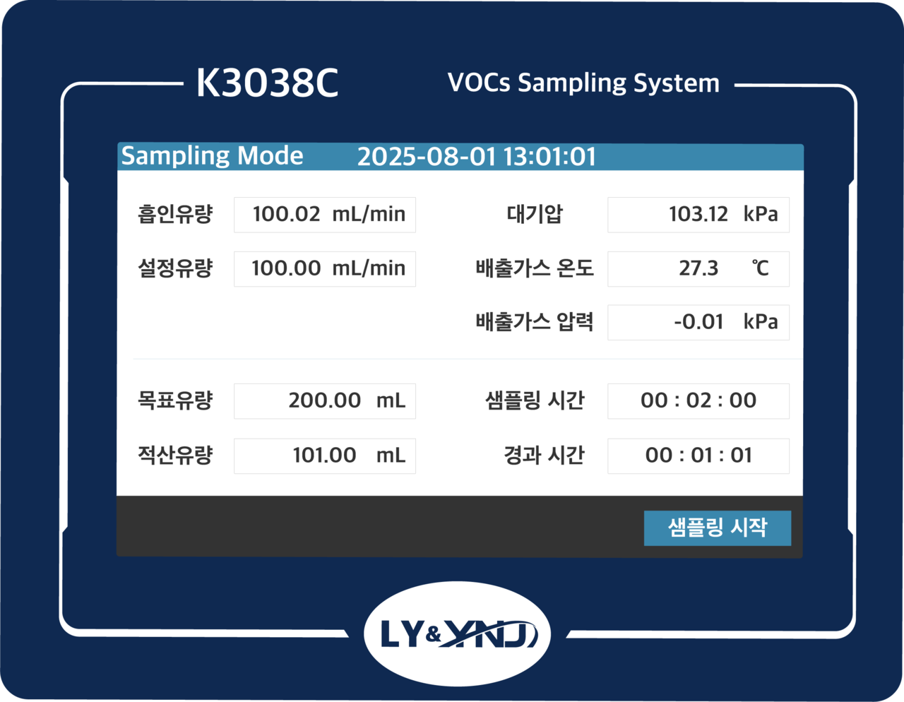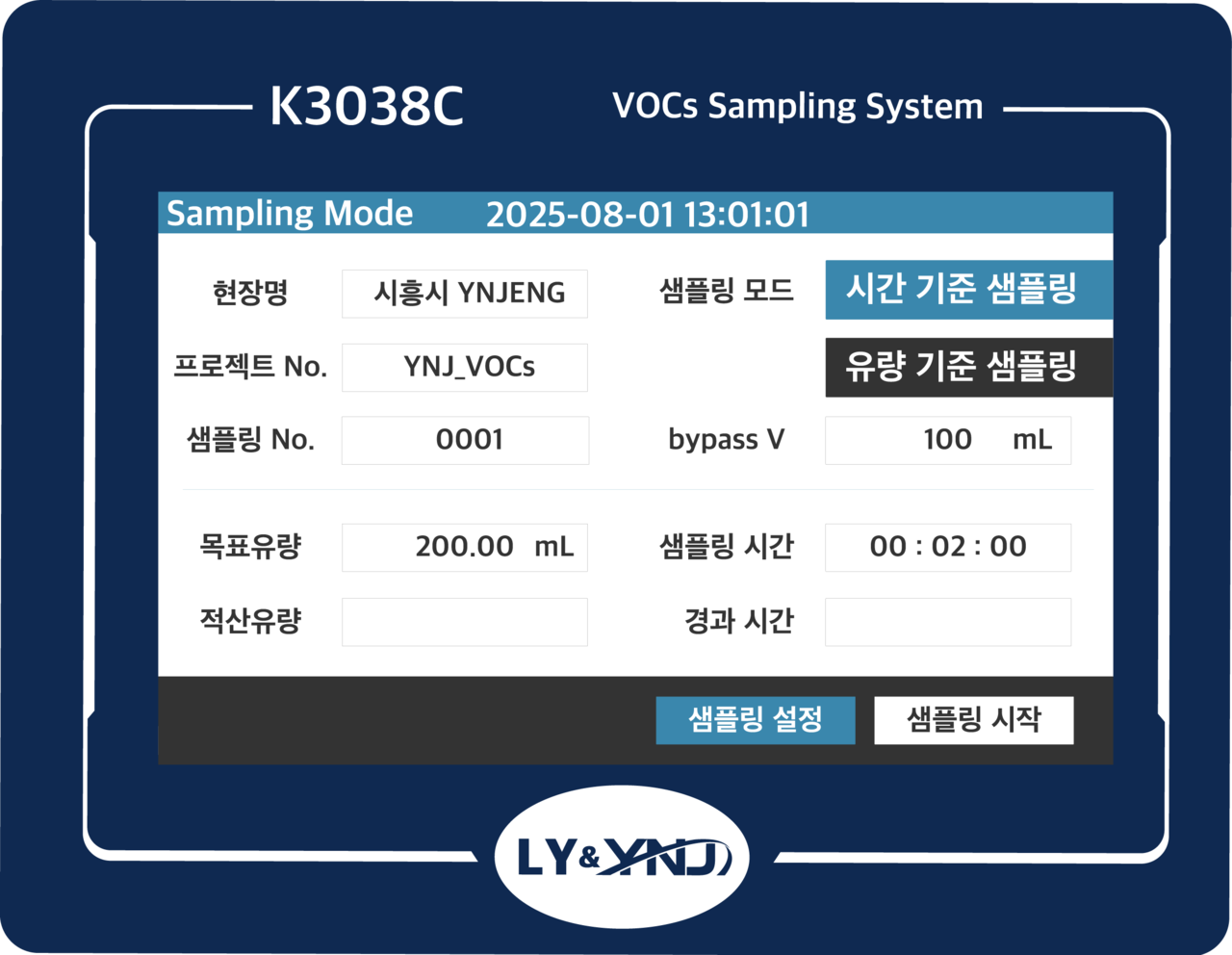 - 분당유량, 시간 등을 설정하여 자동으로 샘플링을 완료합니다.